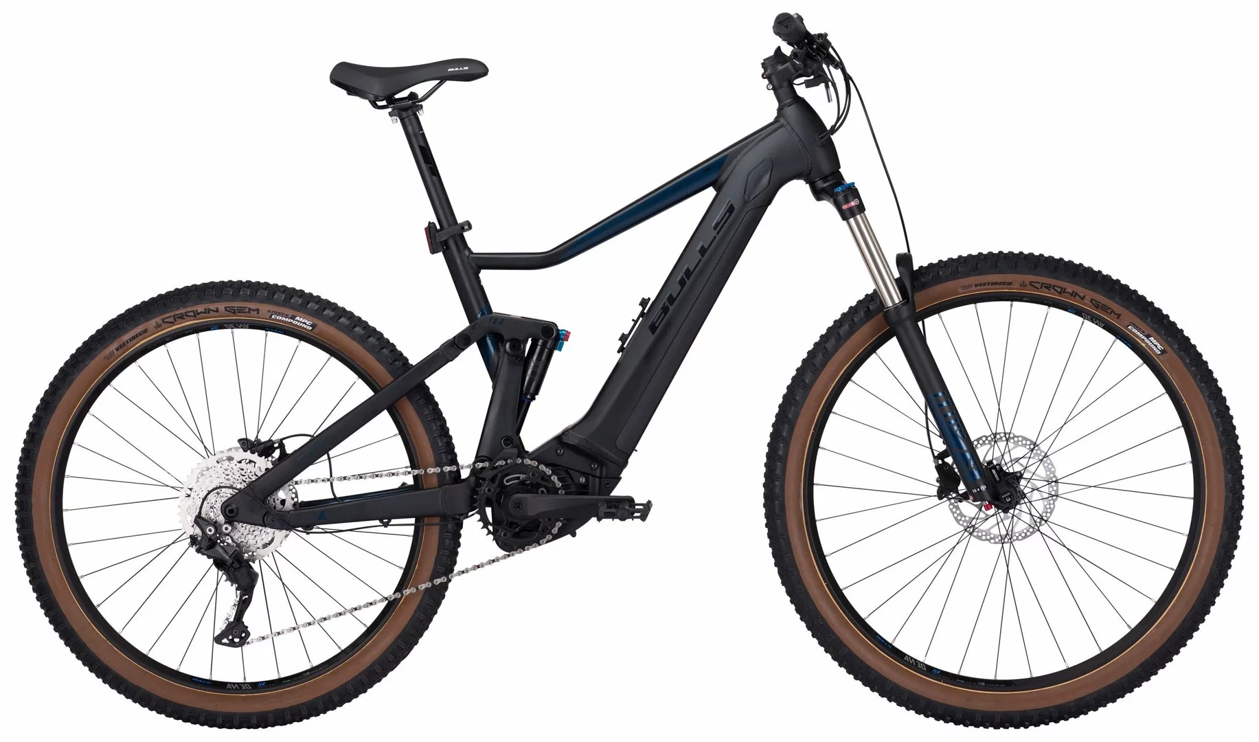 6061 Alu-Rahmen, Lytro-34-Air-HLO Federgabel, Unair TR-LO-R8 Dämper, 140mm Federweg vorne und hinten, Deore 10-Gang Schaltwerk, Schalthebel und Zahnkranz (11-46 Zähne), Tektro HD-M390 Scheibenbremsen mit 2,3mm Bremsscheiben (180mm), Disc-30 Hohlkammerfelgen, Bosch Performance-CX Mittelmotor 85Nm, 400Wh (Standard), 500Wh oder 625Wh (Aufpreis) Akku 36V Li-Ion, STYX Sattelstütze, Vee Tire Crown Gem 27½ / 29 x 2,60 Reifen, CCS-Vorbau, Monkeylink-Connect-Halter vorne und hinten