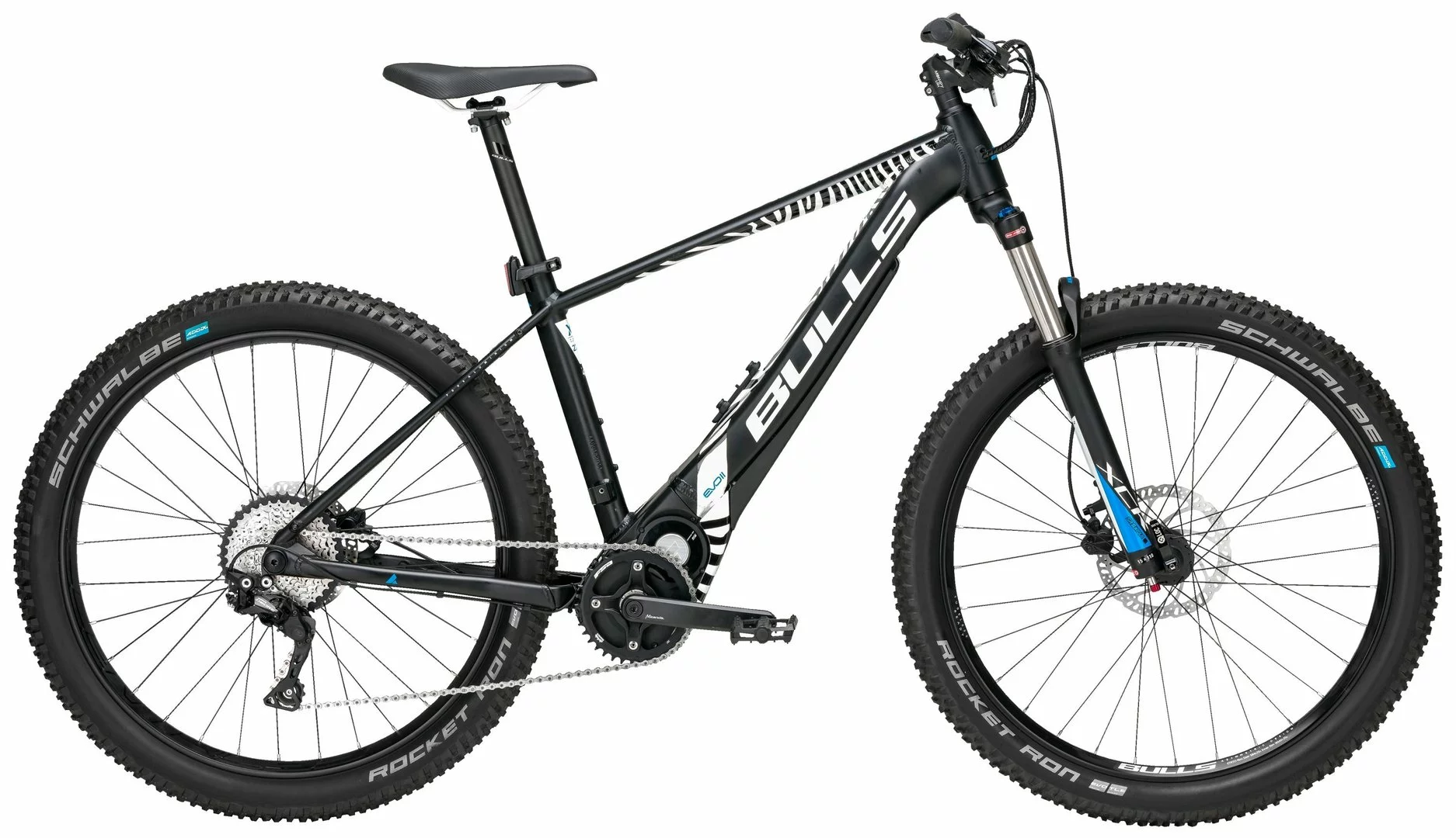 Hydroforming Alu-Rahmen, XCR-34-LO Boost Federgabel mit 120mm Federweg, Deore Schaltwerk, Schalthebel und 11-42 Zahnkranz, Tektro HD-M275 Disc-Bremsen (180/180mm), Bulls AS-35P Disc Felgen, Brose Mittelmotor Drive-S Alu 250W / bis 90Nm, 650Wh Akku aus dem Rahmen entfernbar, 14d Sport-Display, Rocket Ron Snake Skin 2.80 Reifen mit Addix Speedgrip, Monkey Link Lamenhalter