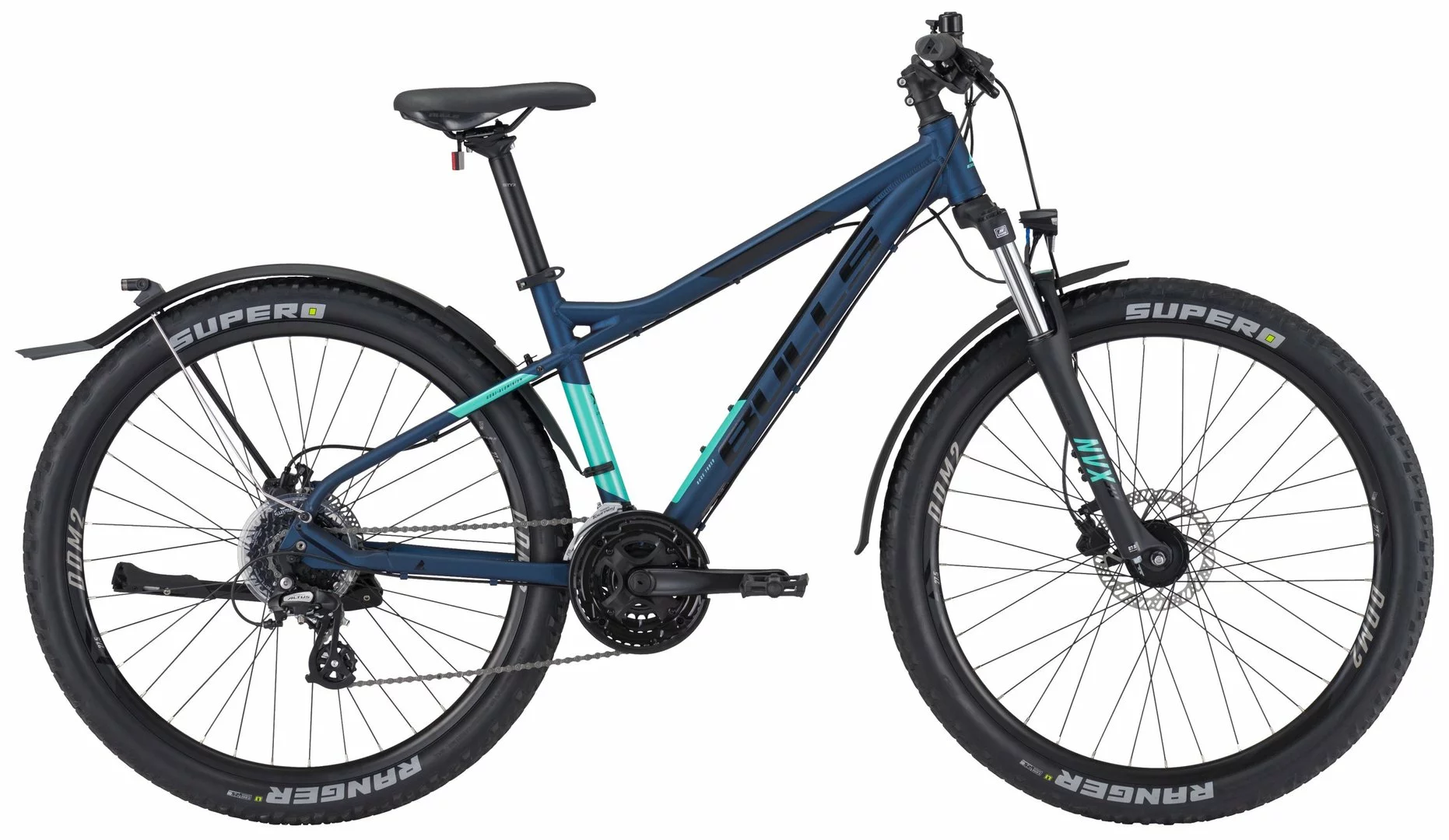 6061 Alu-Rahmen, Suntour NVX-30-DS Federgabel einstellbar, 24-Gang Altus Schaltung und Schalthebel, Tourney Umwerfer, STYX Kurbeln, Shimano Nabendynamo, DDM-2 Alu- Hohlkammerfelgen, Tektro HD-M275 hydraulische Disc-Bremsen (160/160mm), STYX Sattelstütze, Downhill-Lenker und Vorbau, 30 Lux LED-Lampe, Standrücklicht auf dem Schutzblech, verstellbarer Hinterbau-Ständer, Schutzbleche (hinten mit Strebe)