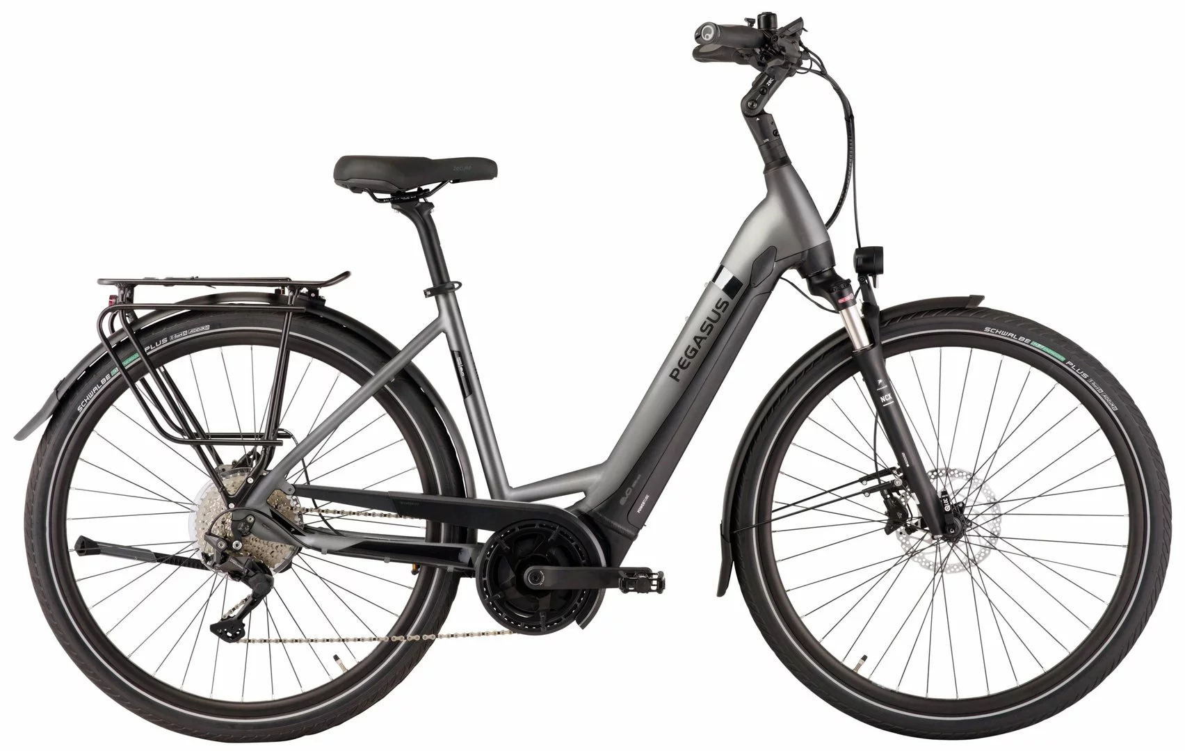 Hydroforming 7005 Alu-Rahmen mit Tapered Steuerrohr, NDX-D-Air-HLO Federgabel, Deore 10-Gang Schaltwerk, Schalthebel und Zahnkranz (11-42), MT-410 Scheibenbremsen mit 180mm Bremsscheiben, Andra-25 Hohlkammerfelgen, Bosch Performanceline Mittelmotor 250W/65Nm, integrierter 400Wh (Serie), 500Wh oder 625Wh Akku (Aufpreis) Akku, Schwalbe Energizer Plus Reifen (50-622), Fuxon FS-100 LED-Lampe mit 100 Lux, 12 Volt Lichtanlage, Zecure Sattel, verstellbarer UP-Vorbau, Lenker und Sattelstütze. Zulässiges Gesamtgewicht: 180kg