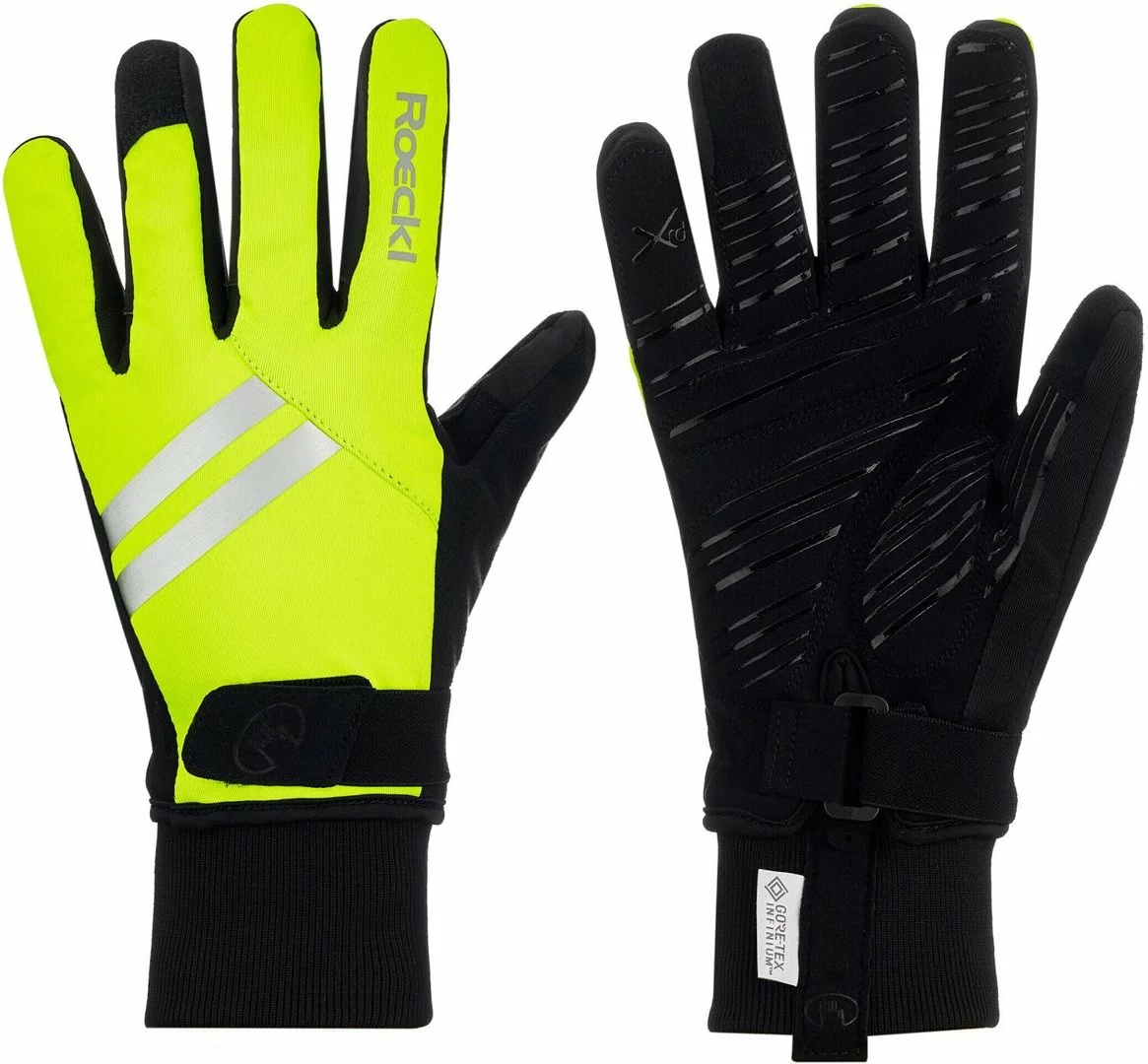 Der warme, winddichte und hochatmungsaktive RAVENSBURG Winter-Radhandschuh – ein echtes Lieblingsstück für alle, die gern im Herbst und Winter biken. Egal ob zur Arbeit, fürs Training oder bei einer entspannten Feierabendrunde mit Freunden. Das absolut winddichte GORE-TEX INFINIUM™ WINDSTOPPER® Soft Shell an der Oberhand schützt vor Kälte, eisigem Fahrtwind und leichtem Nieselregen. An der Innenhand kommt geschmeidiges und strapazierfähiges DURADERO zum Einsatz, das in Kombination mit SILICONE-GRIP einen guten Griff und zuverlässige Lenkerkontrolle bietet. Der ERGONOMIC CUT mit leistungsstarkem High End XRD® Technology-Polster sorgt für spürbar weniger müde Hände und damit für herausragenden Komfort. Unterstützt wird der hohe Komfort durch die ROECKL-exklusive COMFORT-INNOVATION Daumenbeugenpolsterung, ein weiches Futter und nach außen verlegte Nähte an den Fingern. Weitere Details: ein elastischer Oberhandriegel und ein Strickbündchen für besten Wärmerückhalt, außerdem ein GORE-TEX INFINIUM™ WINDSTOPPER® Tornado Fleece Einsatz als Wischdaumen. Mit den TOUCHSCREEN COMPATIBLE Besätzen an Daumen und Ringfinger beider Handschuhe lassen sich Smartphones zuverlässig bedienen, ohne das der Handschuh ausgezogen werden muss. So bleiben die Finger warm und Biker glücklich. Seine schlanke Passform und die schlichte Optik mit reflektierenden Designelementen machen den RAVENSBURG zu einem vielseitigen Begleiter in der kalten Jahreszeit auf dem Bike.