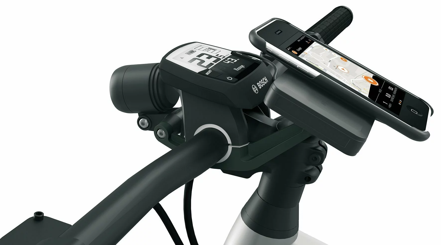 Das COMPIT/E+-System besteht aus einer Smartphone-Halterung und Qi-zertifizierter +COM/UNIT mit integriertem NFC-Chip. An die Stromquelle des E-Bikes mit USB-Schnittstelle am Bordcomputer angeschlossen, ermöglicht die durchdachte Technologie ein kabelloses Laden des Smartphones während der Fahrt. Mit einem Dreh lässt sich die Funktionseinheit an allen gängigen Lenker/Vorbau-Kombinationen befestigen und individuell in Position bringen. Inkl. Kabel zur Stromversorgung durch E-Bike-Akku.
